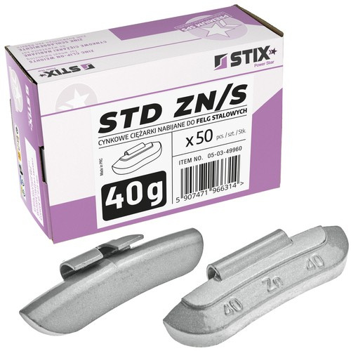 Ciężarki nabijane STD Cynkowe do felg stalowych ZN/S 40g / 50 szt. - Stix