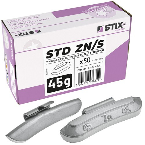Ciężarki nabijane STD Cynkowe do felg stalowych ZN/S 45g / 50 szt. - Stix